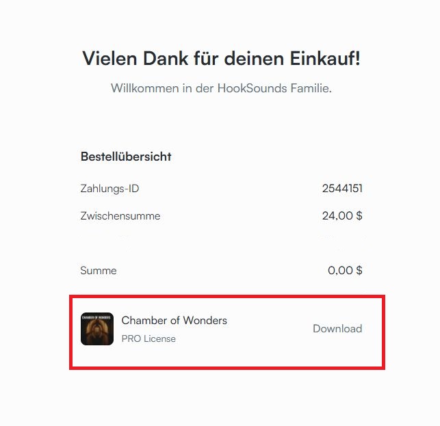 - Auf der “Danke-Seite”, die nach dem erfolgreichen Bestellvorgang angezeigt wird, findest du die Links zum Herunterladen deiner Musik. Die Hauptversion sowie alle weiteren Versionen werden im ZIP-Format bereitgestellt. Diesen .ZIP Ordner musst du zunächst per Rechtsklick “entpacken”. In der ZIP-Datei findest du den Haupttitel und seine Versionen, jeweils im WAV- und MP3-Format.