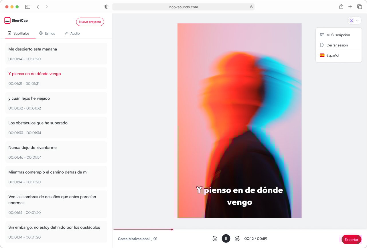 Genera y personaliza automáticamente subtítulos para tus videos de YouTube y TikTok. Rápido, preciso y totalmente personalizable.