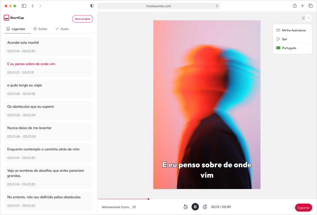 Gere e personalize legendas automaticamente para seus vídeos do YouTube e TikTok. Rápido, preciso e totalmente personalizável.